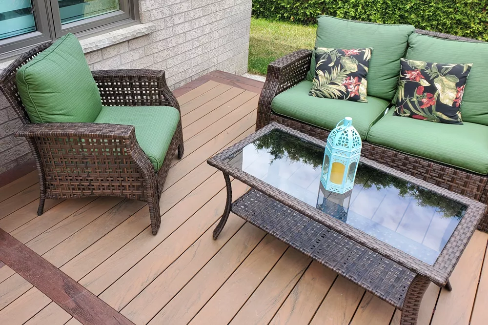 Better Composite Decking Boards – Grooved or Square Edge, fully encapsulated Solid Core board. Our deck boards remain 30% cooler to the touch, are made with rice hull instead of wood grains and sawdust like other composite decks on the market. They are also capped on all four sides for better protection and longevity.